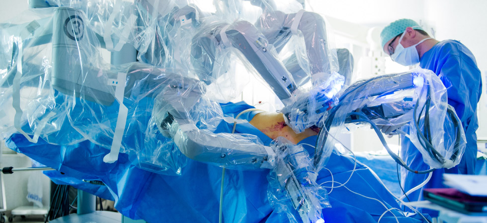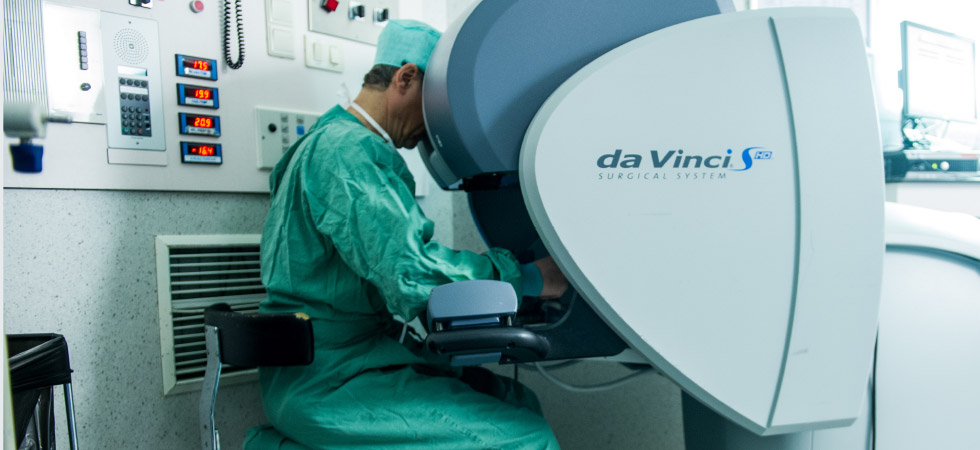 Для некоторых урологических, кардиологических и абдоминальных, операций используют удивительный робот Da Vinci сверхвысокого разрешения. Это революционный аппарат для проведения мини-инвазивных хирургических операций, который позволяет свести к минимуму кровотечения, болевые ощущения, продолжительность послеоперационного периода, а также риск инфицирования и побочных эффектов. Хирург, сидящий за удобным пультом, который позволяет видеть увеличенный оперируемый участок в 3D, управляет хирургическими пинцетами и ножницами с помощью 5 педалей и 2 джойстиков. Его движения передаются на автомат с очень высокой точностью и коррекцией недостатков, это обеспечивает точность манипуляций в 5 раз превосходящую точность движений человека.