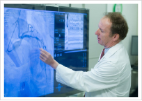При лечении ишемической болезни сердца возможно не только исследование коронарных артерий и выявление их сужения, но также их расширение и установка стента (специальной маленькой пружинки, которая восстанавливает просвет кровеносного сосуда) за одну процедуру, без необходимости оперировать пациента. В кровеносную систему вводят тонкий катетер (через верхние или нижние конечности), в котором находится мини-камера, а также проводник с баллончиком, который можно надувать или использовать в качестве проводника стента.